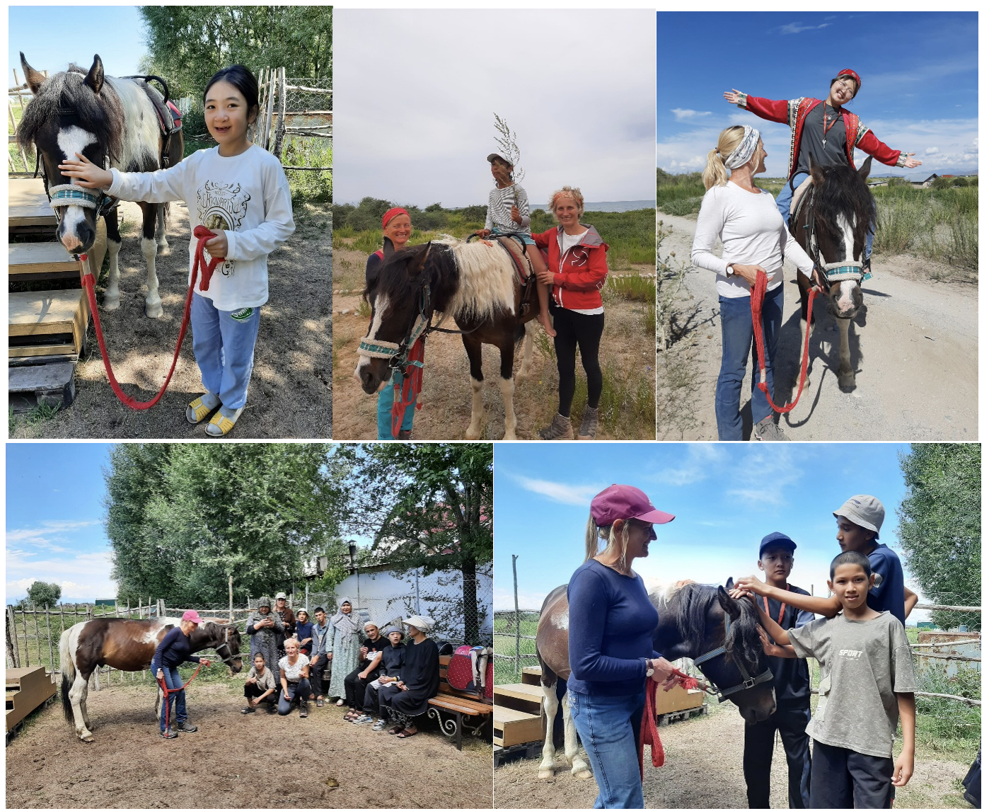 Eine weitere Herausforderung war die sprachliche Barriere. Wir lernten einige russisch und kirgisische Vokabeln, kommunizierten mit Mimik und Gestik und anderen Körpersignalen, zum Glück auch manchmal auf Englisch. Wir waren sehr froh, dass es uns gut gelang mit dem Pferd für die Kindern eine angenehme und klare Therapiesituation zu schaffen. Es machte richtig Spaß. Gemeinsam mit den Therapiekindern, ihren Geschwistern und Müttern erstellten wir einen Therapiezeitplan mit den Namen der Therapiekinder in „Lautsprache“, zumal wir die kirgisischen Schriftzeichen nicht entziffern konnten.