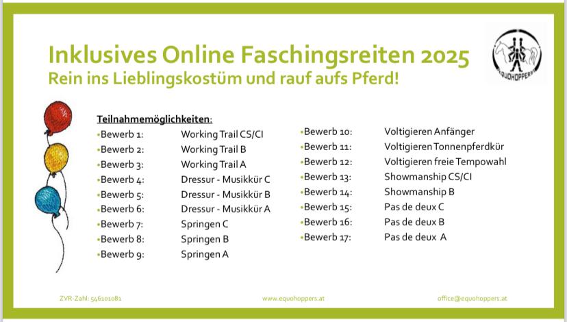 Anmeldeschluss: 02. Februar 2025 - Teilnehmerliste (Name/Bewerb) an office@equohoppers.at vorab per E-Mail senden