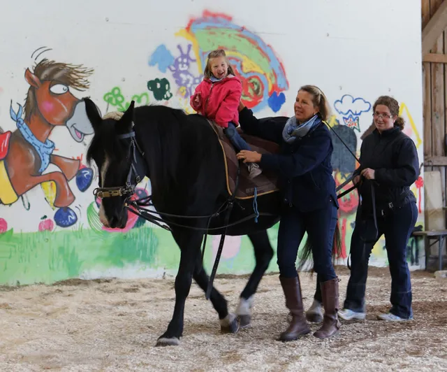 Die dreidimensionale Bewegung des Pferderückens fordert und fördert die Patient:innen in ganz besonderer Weise. Schon durch den breiten Sitz auf dem Pferd und durch dessen Körperwärme werden Körperspannungen reduziert. Das Becken wird in einer gangtypischen Art bewegt, Rumpf, Kopf und Arme müssen darauf reagieren und sich ständig anpassen. Dadurch werden Aufrichtung, Haltungshintergrund, Gleichgewicht, Koordination von Bewegungsabläufen und vieles mehr geübt.